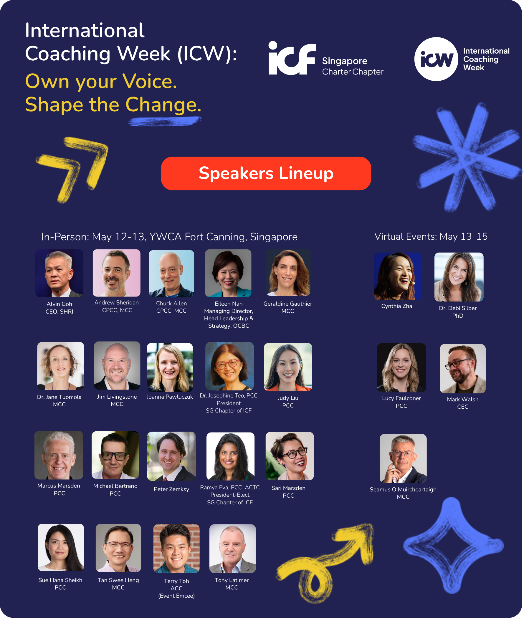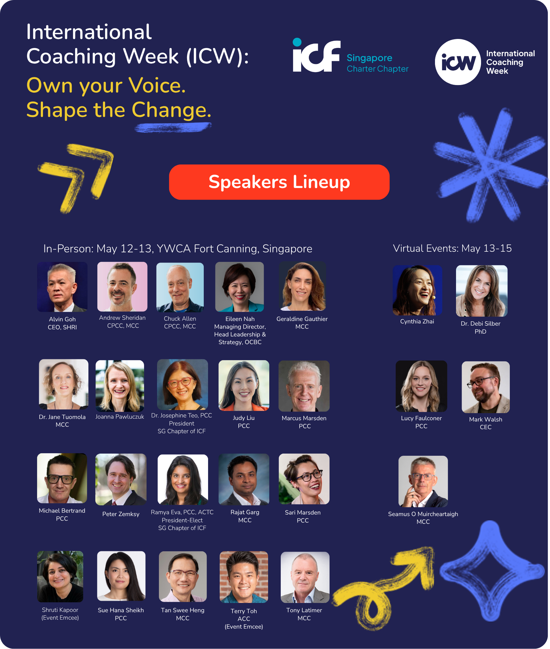 Volunteer Ambassadors of the Singapore Chapter of ICF enjoy a special registration rate in recognition of their contribution to the chapter and the coaching community. Ticketing details for the ambassador rate will be shared separately with volunteer ambassadors.
